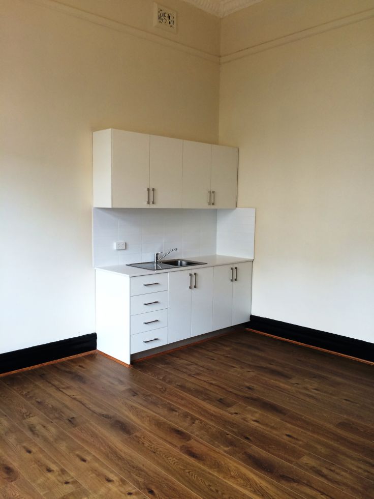 Large room, fully renovated, freshly painted with timber floorboards and high, ornate ceilings in this totally renovated boarding house. Plenty of natural light from a generous window.