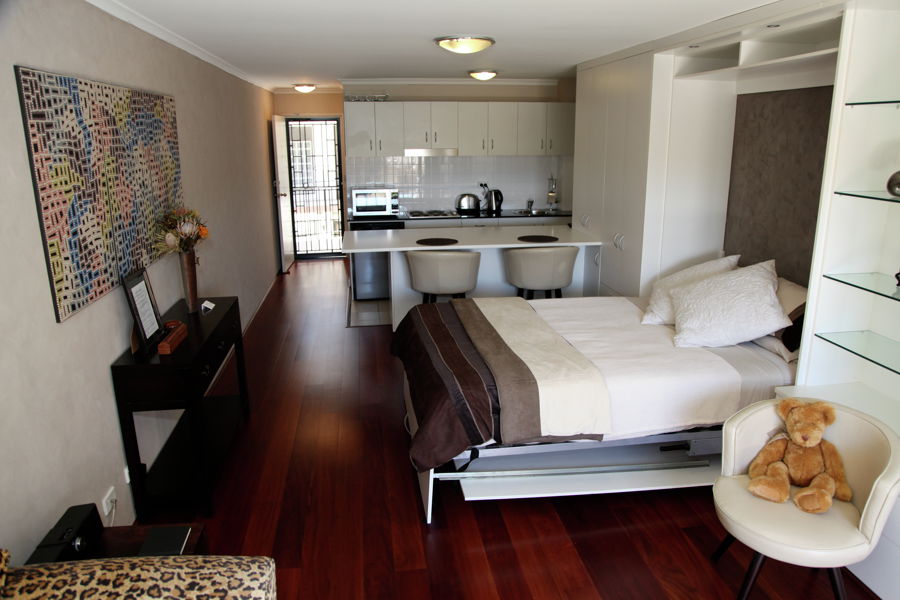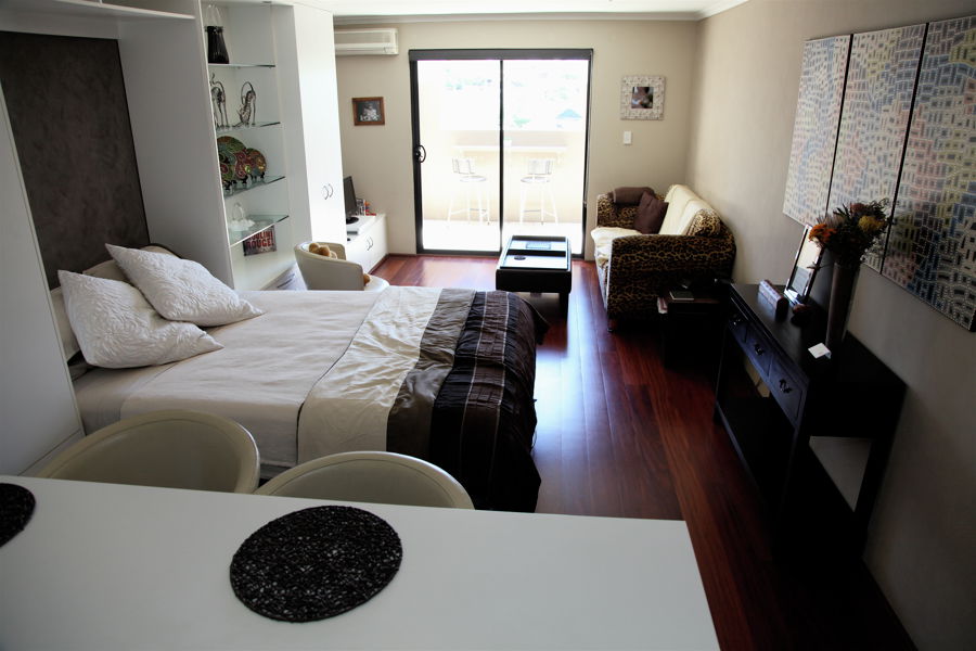 This modern furnished apartment presents a streamline and well integrated layout, perfect for easy living & set in the very heart of Newtown featuring;
