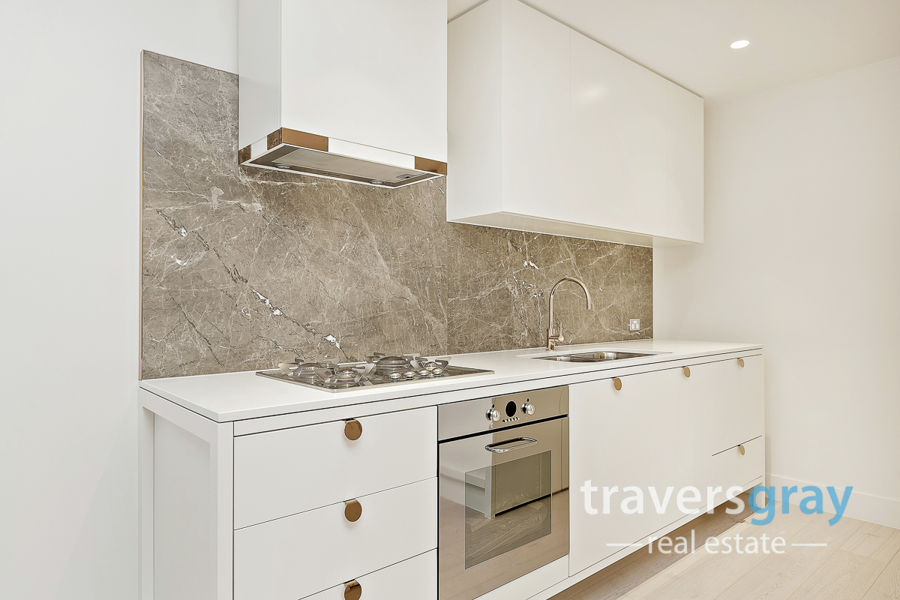 * Brand new designer kitchen with stainless steel gas appliances and integrated dishwasher