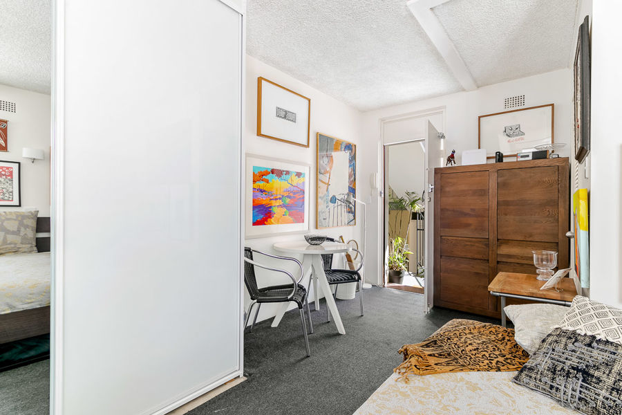 This sundrenched studio captures a breathtaking city skyline from just outside your front door. Have your morning coffee admiring the view of Sydney Harbour and city sky line.