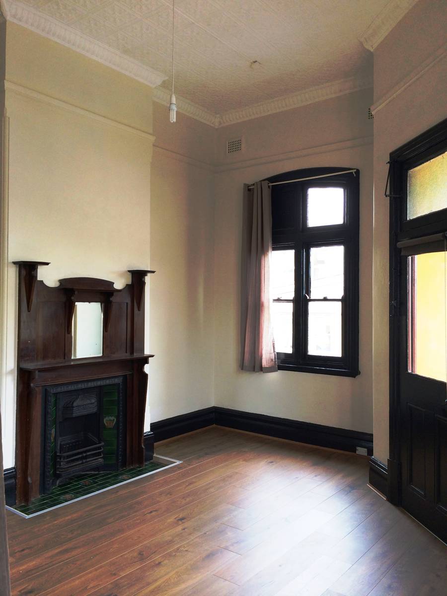 Good size room, would suit office space, fully renovated, freshly painted with timber floorboards, ornate fireplace and high, decorative ceilings in this totally renovated boarding house.