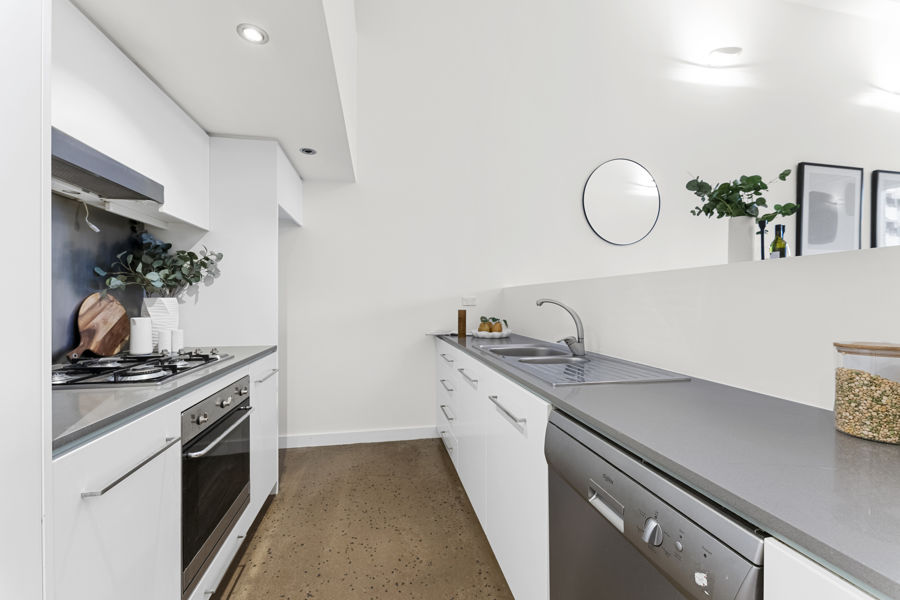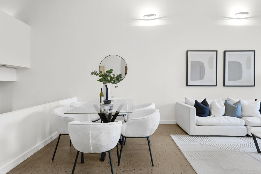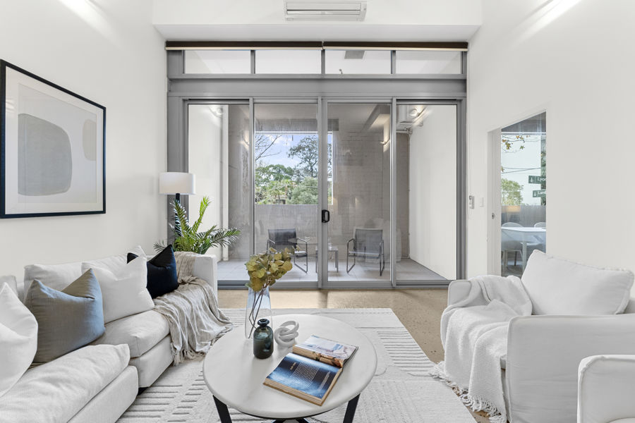 Sleek minimalist interiors, 3.8m ceilings, reverse cycle air