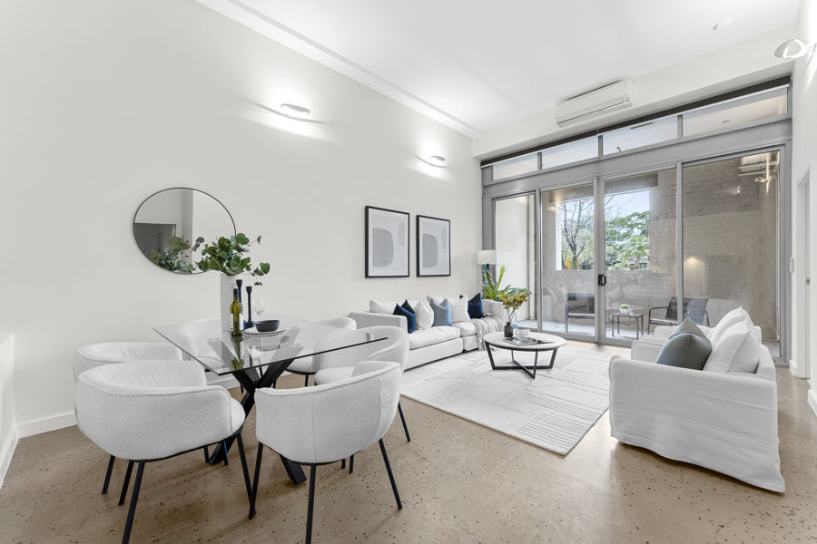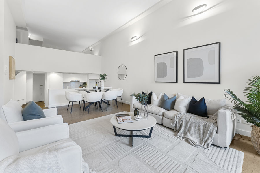 Marchese Partners' conversion of the landmark Weston biscuit factory created one of Inner Sydney's most desirable warehouse transformations, Enjoying a fashionable, unbeatably central city fringe hotspot, this dual-level apartment combines chic modern interiors with a spacious layout and plenty of natural light.