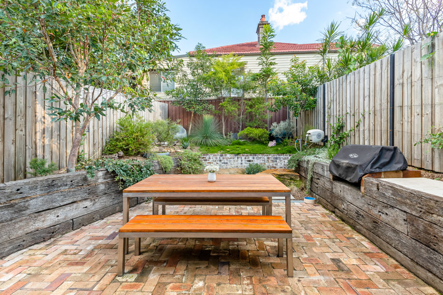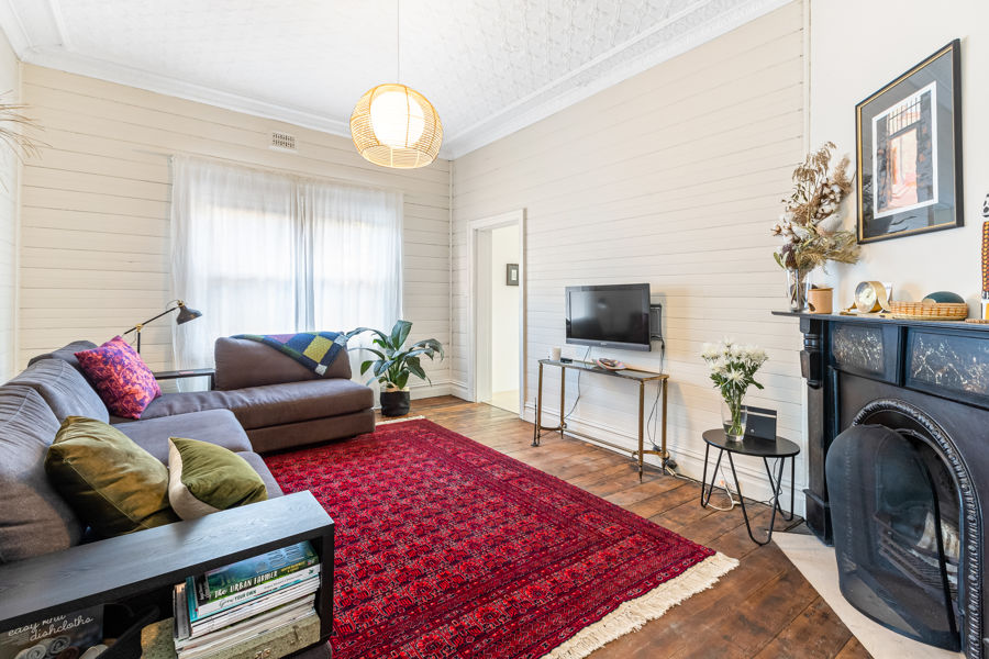 Elevated and set back from the street this peaceful retreat is a Walk through in time from an original timber cottage with decorative ceilings, panelled walls and fireplace, opening into a contemporary modern design. Modern open plan kitchen with dining space opening into a private oasis of garden beds and built-in BBQ.