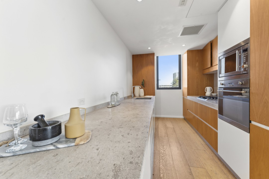 Designed by award-winning architects SJB Architects, this large 2-bedroom apartment with a smart, well-designed layout is located on level 5 and has a lovely green urban outlook