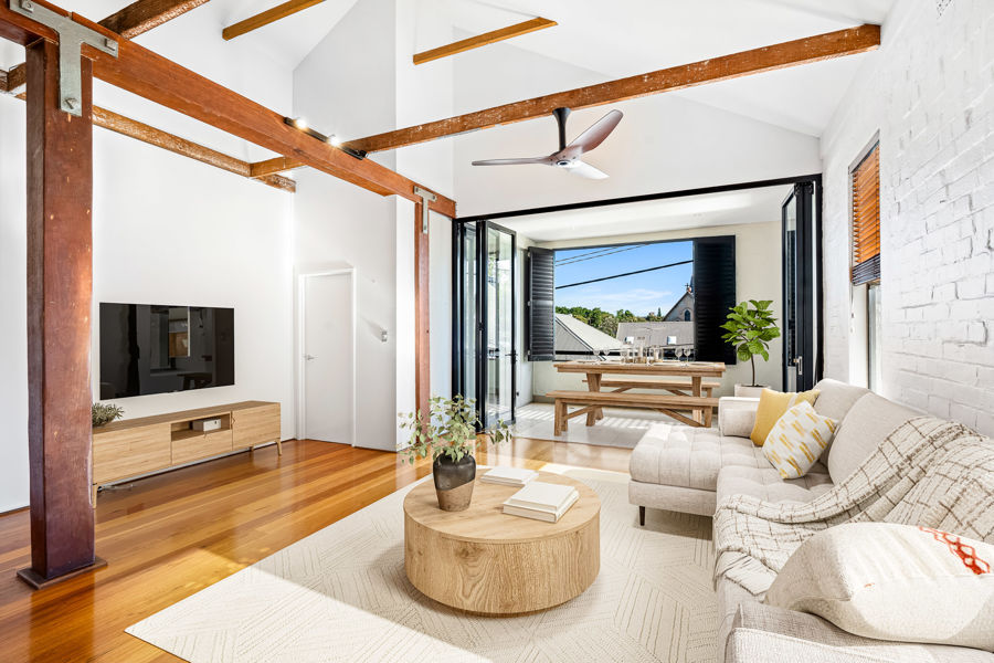 Perfectly positioned just moments from the vibrant heart of Erskineville village, this striking warehouse conversion occupies the second floor of a historic two-storey building. A former shoe factory, the property has undergone a visionary transformation, blending industrial charm with modern luxury.