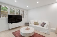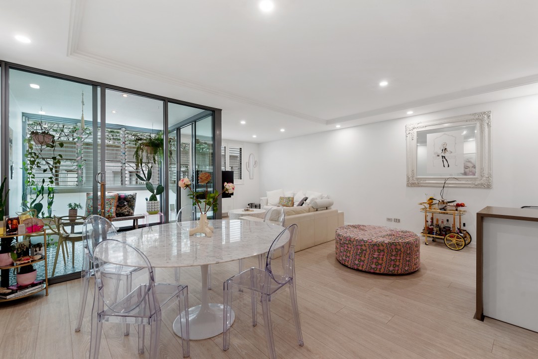 - Light-filled living space with high ceilings, modern touches & timber floors