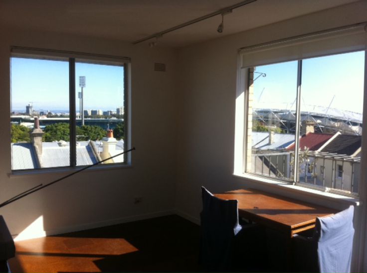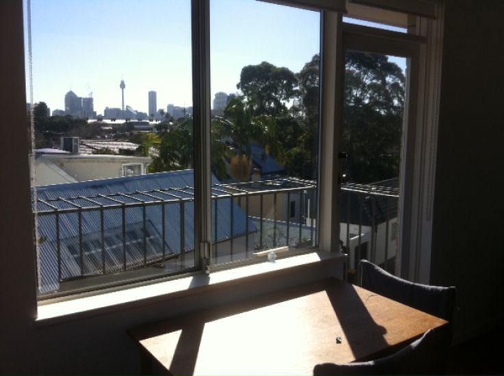 This recently renovated top floor studio has views to the eastern suburbs and city.