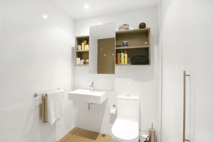 * Contemporary bathroom with concealed laundry + clothes dryer