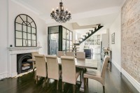 With a gorgeous open plan living, dining and kitchen area which covers the downstairs level with timber floorboards and stunning exposed brick wall. Luxury fixtures and fittings throughout & 2 ornate fireplaces. The stylish kitchen is state of the art with sit down breakfast bar, 7 duel fuel burner gas stove with 4 door oven and dishwasher.