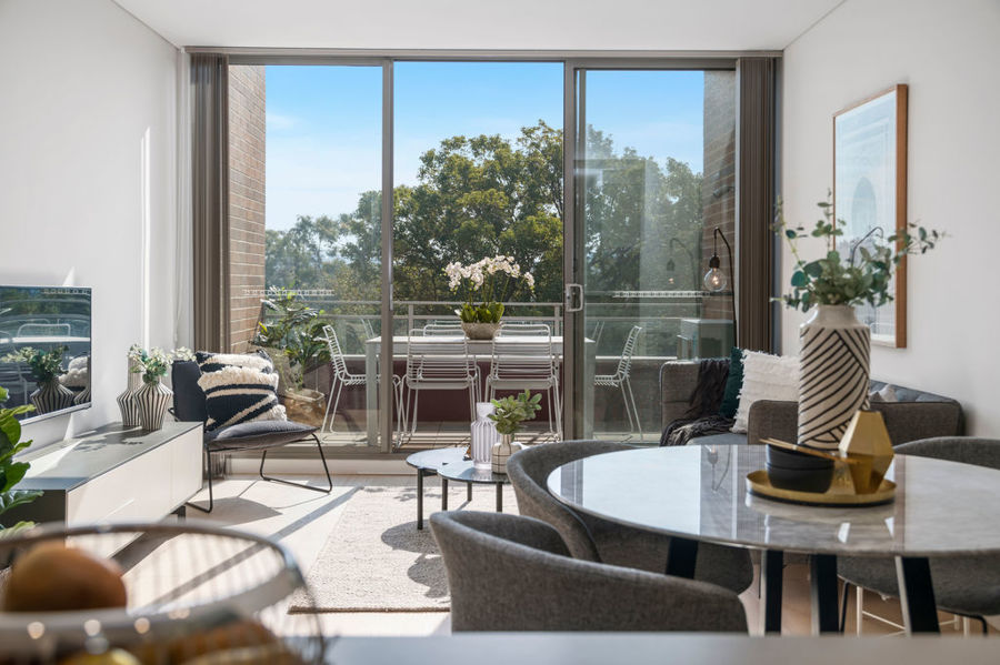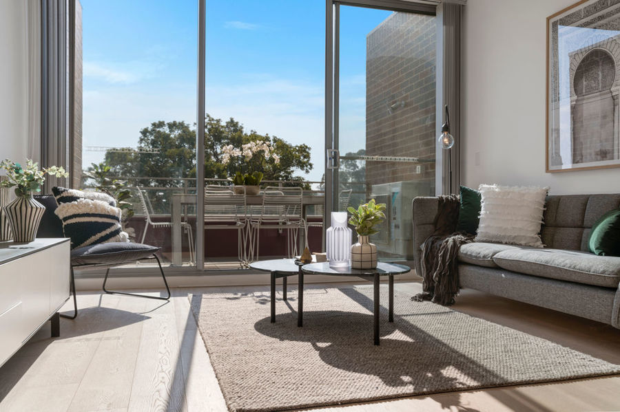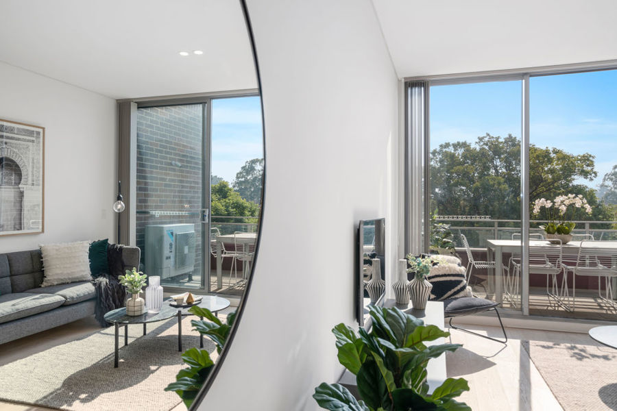 - Light and airy living spaces with balcony and leafy skyline views