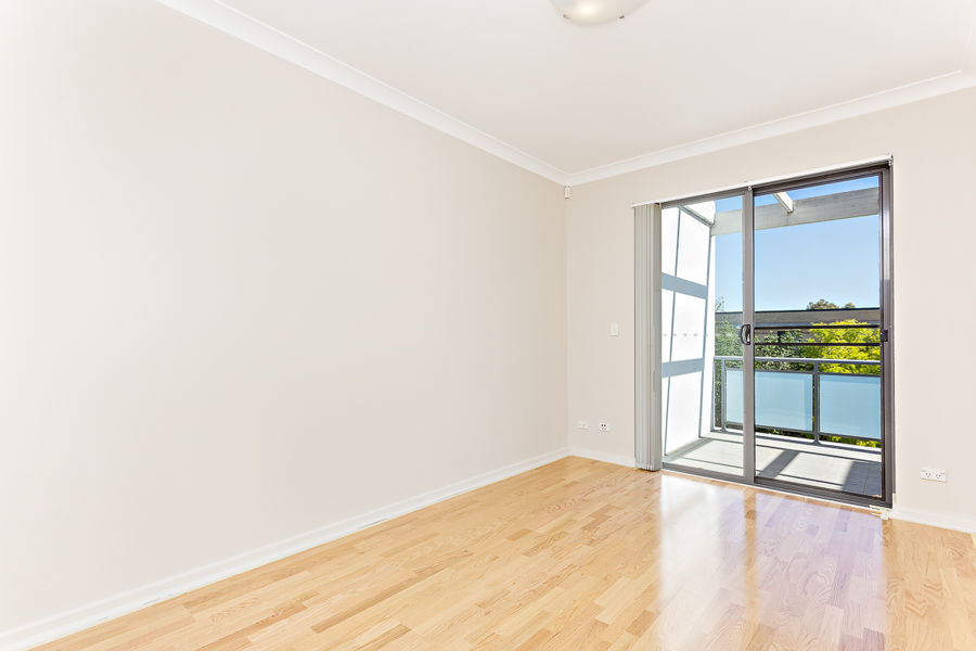 • One generous bedroom with built-in wardrobe and balcony access.