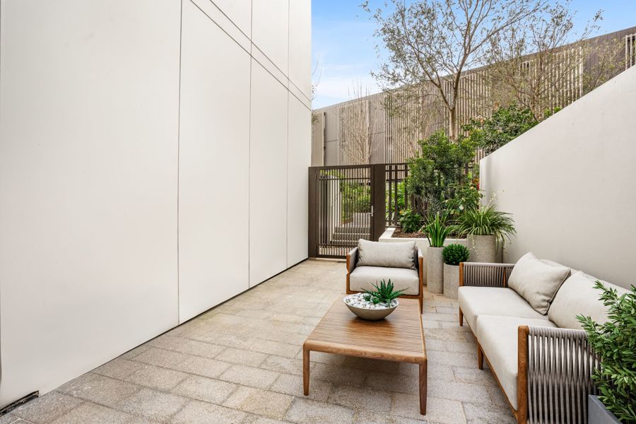 Private balcony for indoor/outdoor living and separate courtyard