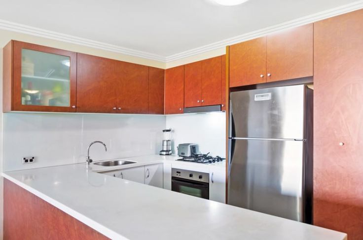 This spacious two bedroom apartment is perched high on the 5th floor enjoying views over the resort style grounds, swimming pool, tennis and basketball courts.