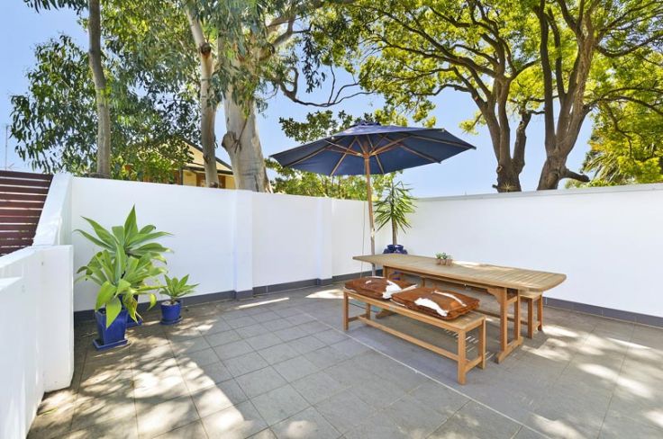 large alfresco courtyard creates a feeling of a house rather than an apartment.